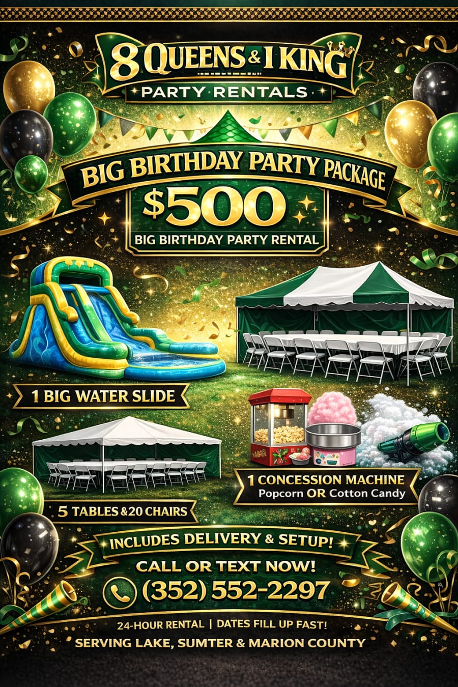 Reserve the Big Party Package today. Limited availability on weekends. Call or book online to confirm date, delivery, and setup time. π Fast confirmation. Reliable rentals. Make your big event easy and unforgettable. π